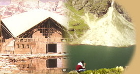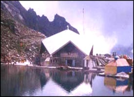 Hemkund is located in India's northern state of Uttaranchal in the Garhwal region. As the name suggests, Hemkund is a lake in the Himalayas. There are many lakes in the Himalayas, but few are set in as dramatic a setting as Hemkund is. At an altitude of 4,329 m above sea level, which is several hundred meters above the tree line, the lake is set like a jewel in a crown of seven of the most picturesque snow peaks of the Himalayas. In this surrealistic landscape,