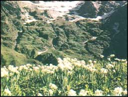 Within the main valley are smaller valleys carved out by streams of melting glaciers. On the banks of these valleys, you can encounter exciting pattern of flowers. One such valley exists along the Donagair Garh, the last of many streams. On its banks are some of the most magnificent plants.