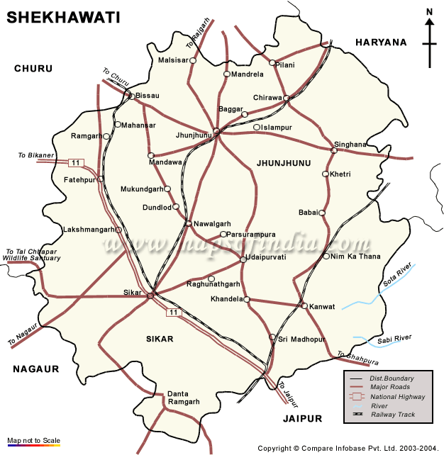 The Shekhawati Map offers you an outline of the region and the various places with their accurate location.